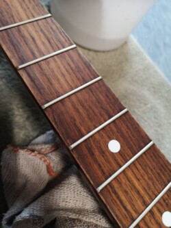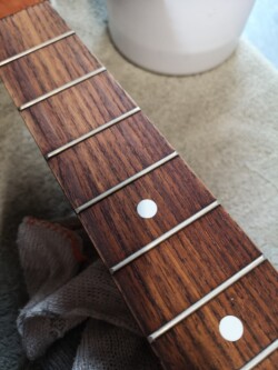 Never got it why Fingerboards are painted, to make them look like Ebony is a common thought, and hide the lovely wood underneath, as always it’s cleaned first to see any possible damage or other unwanted issues….This is the first pass.